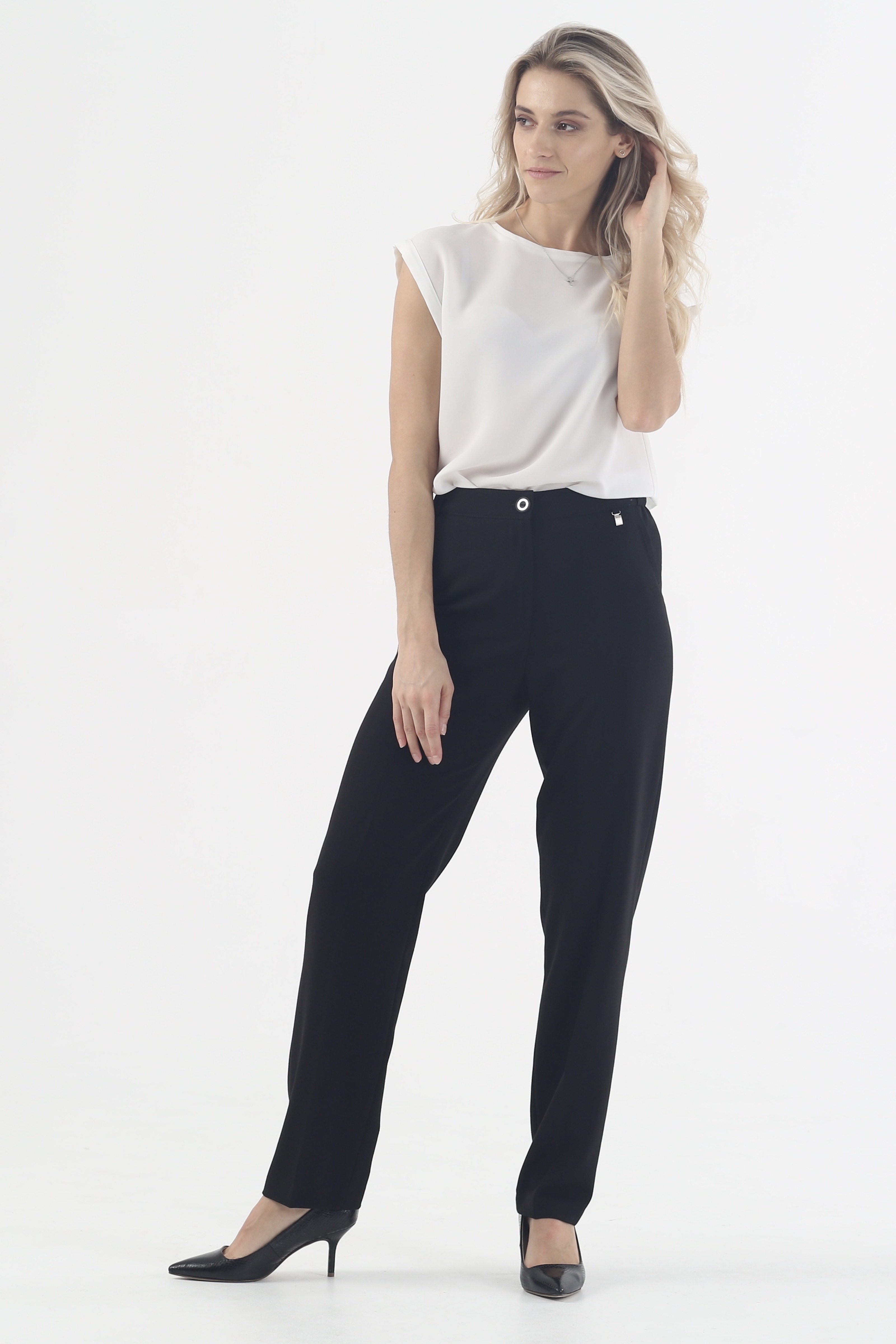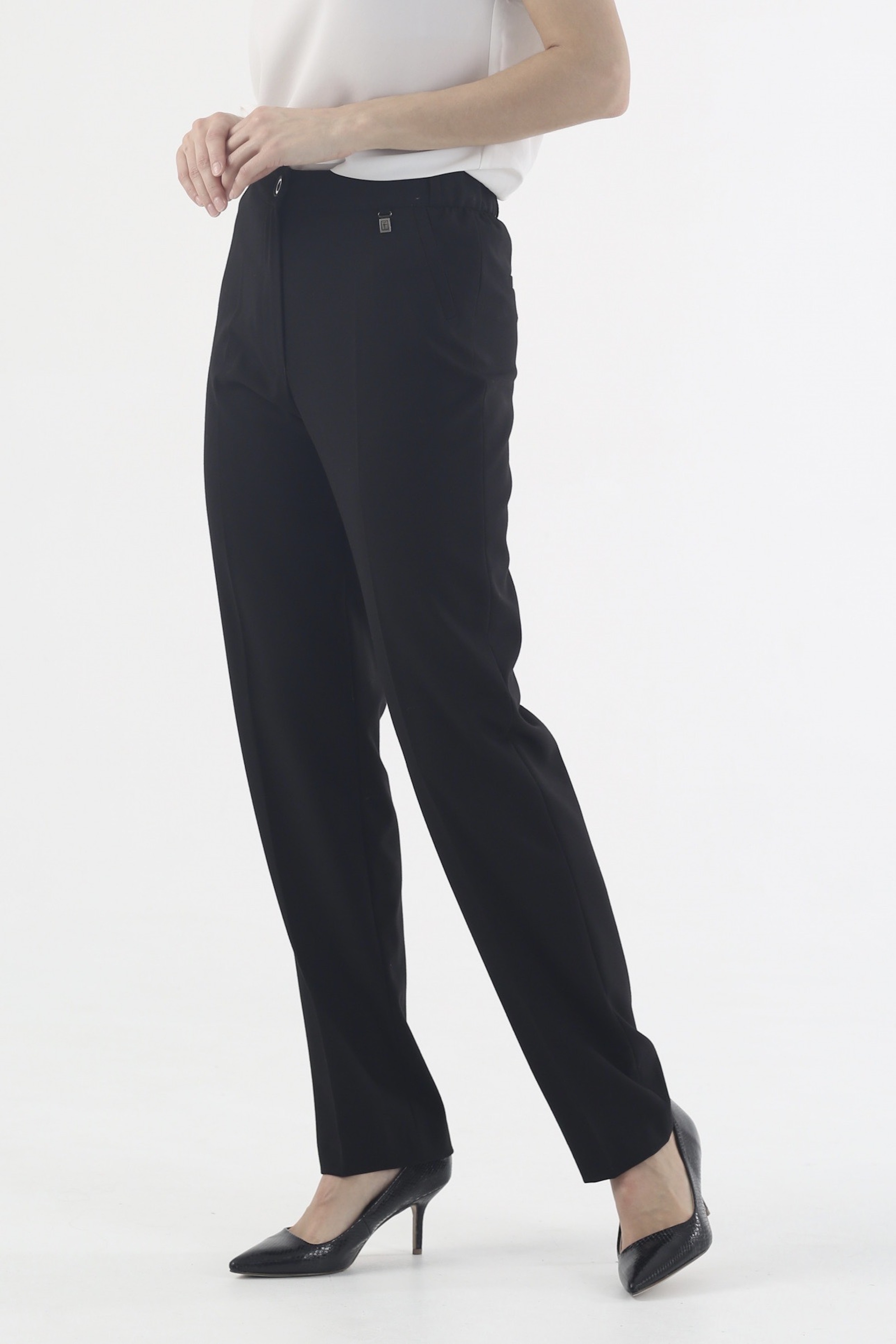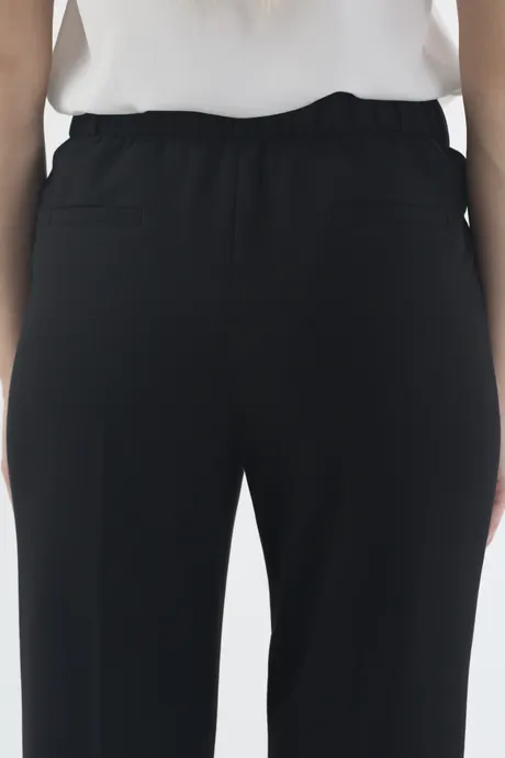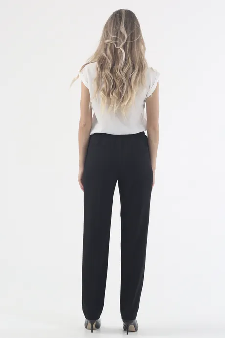 Черные зауженные брюки на высокой посадке на резинке "Рубенс" - это идеальный выбор для тех, кто ценит стиль и комфорт в одежде! Они создают идеальный силуэт, придавая фигуре выразительности и создавая эффект стройных ног. Брюки выполнены из качественного материала, который обеспечивает комфорт и свободу движений, а удобная резинка на поясе делает их еще более удобными в использовании. Черный цвет придает им элегантный и стильный вид, что делает их идеальным выбором для создания как повседневных, так и более формальных образов. Наши брюки "Рубенс" - это универсальный элемент гардероба, который позволит вам выглядеть модно и стильно в любой ситуации.