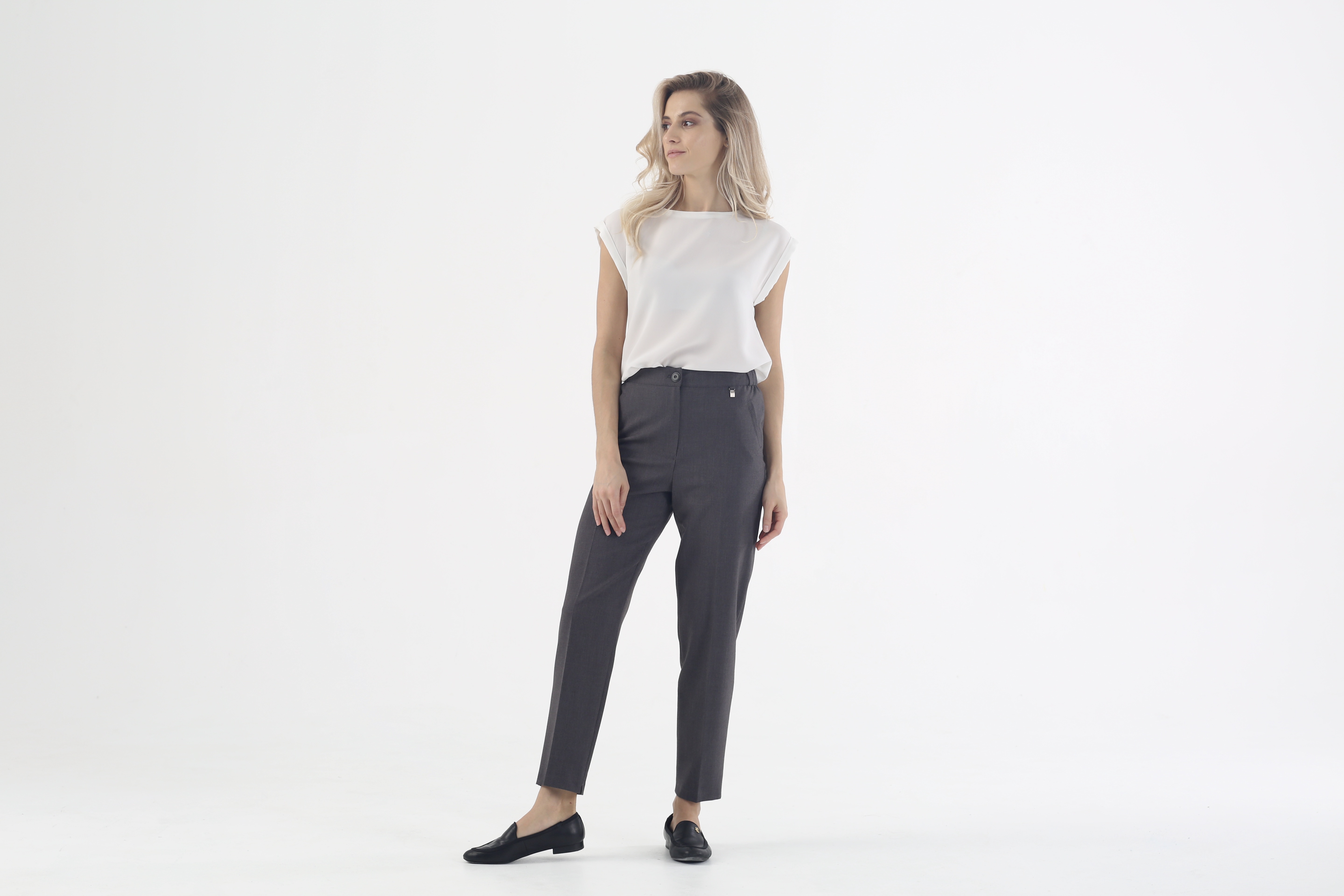 Хотите выглядеть стильно и элегантно в любой ситуации? Наша серая модель брюк "Рубенс" на высокой посадке с резинкой создает идеальную посадку на фигуре, обеспечивая комфорт и удобство в носке. Их зауженный крой придает фигуре изящества, а серый цвет делает их универсальными для любого образа. Сделанные из высококачественного материала, они будут служить Вам верными спутниками в любых ситуациях. Сочетайте их с любыми верхами и аксессуарами, чтобы создавать яркие и модные образы каждый день.