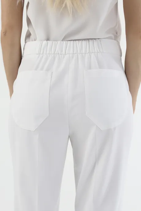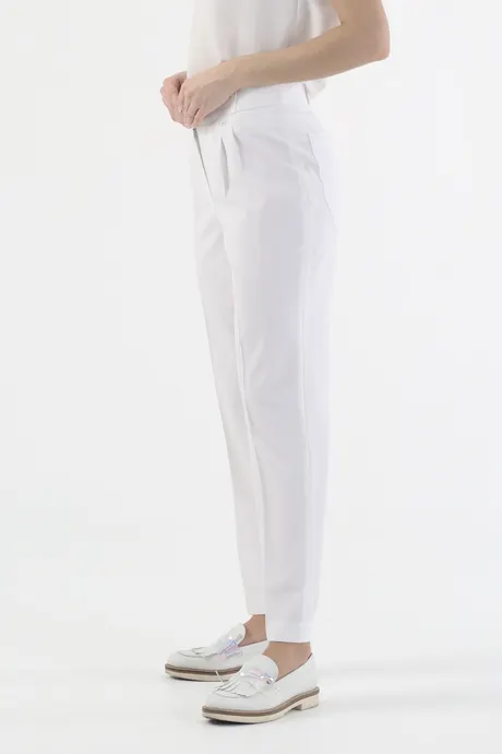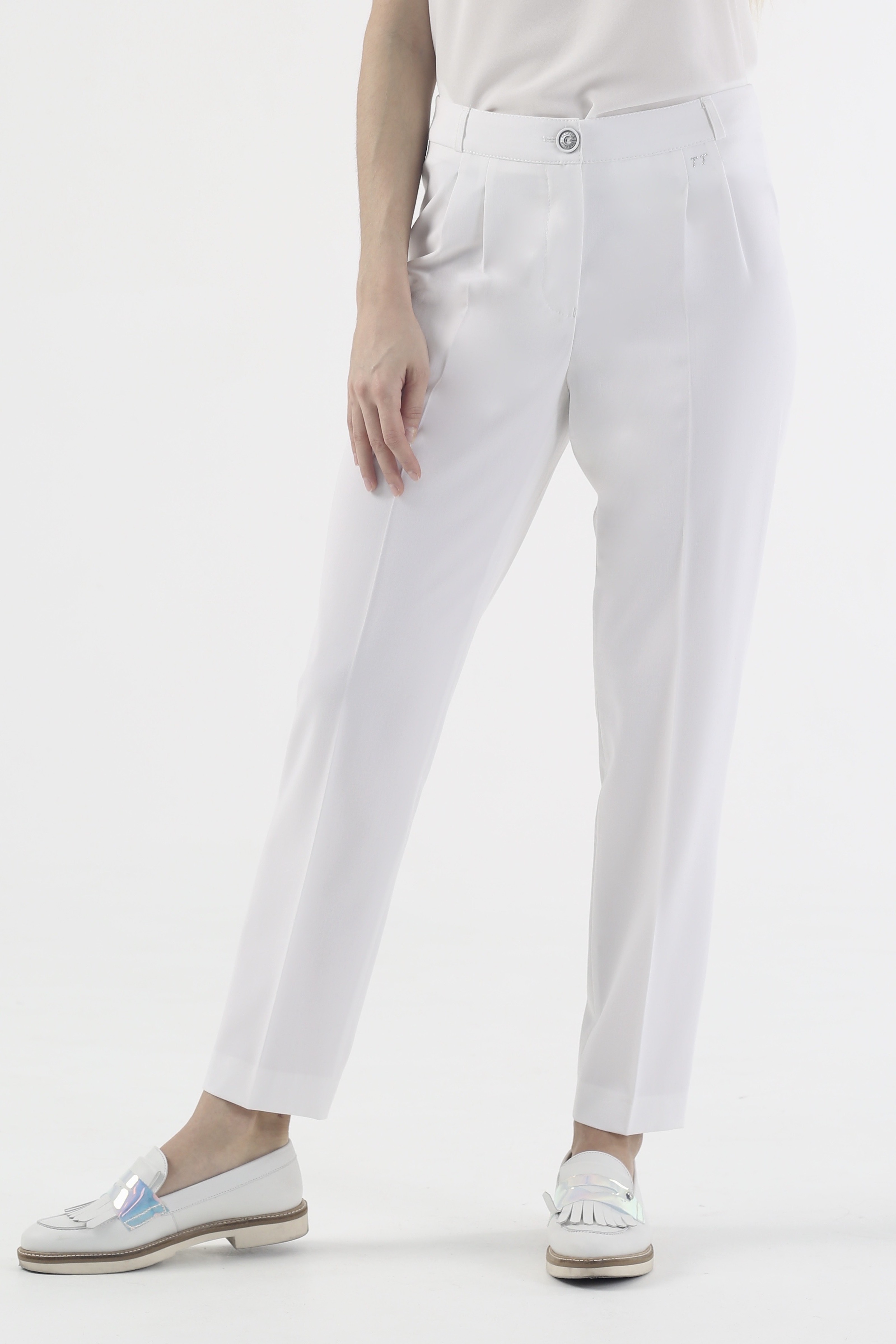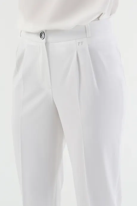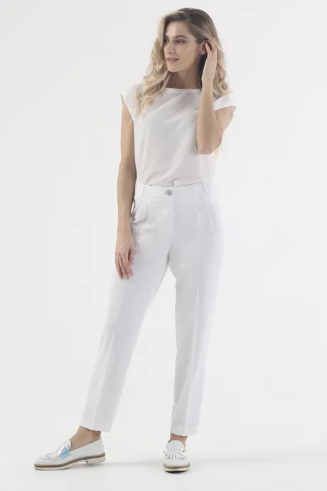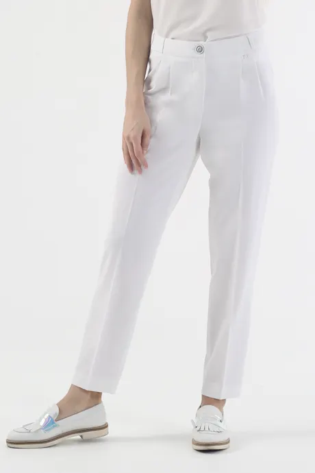Ищете универсальные и стильные брюки, которые будут гармонично сочетаться с различными верхами и обувью? Тогда обратите внимание на наши белые брюки "Лувр" на средней посадке, с зауженным кроем к низу! Их сдержанный дизайн и универсальный цвет позволяют создавать многообразие образов, а зауженный крой к низу придает ногам элегантность и стройность. Средняя посадка делает фигуру более пропорциональной и женственной. Благодаря качественным материалам, из которых они изготовлены, и удобному крою, вы будете чувствовать себя комфортно в течение всего дня. Добавьте в свой гардероб такой универсальный элемент, как белые брюки "Лувр" на средней посадке, и создавайте многообразные образы в любое время года!