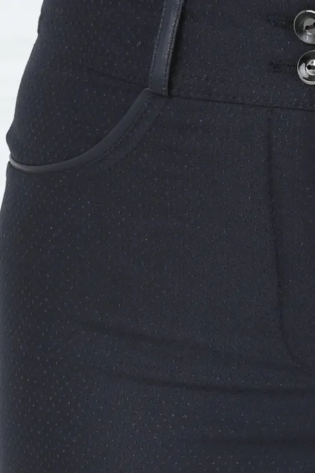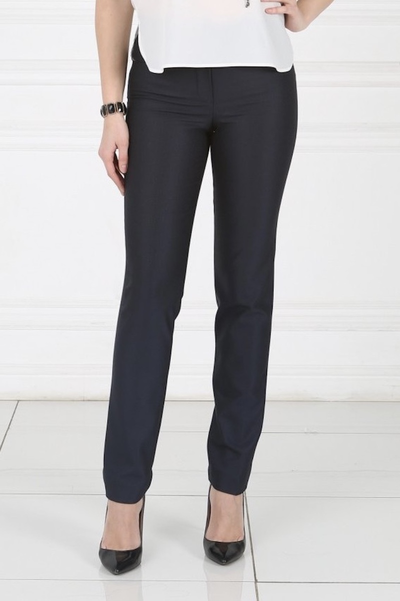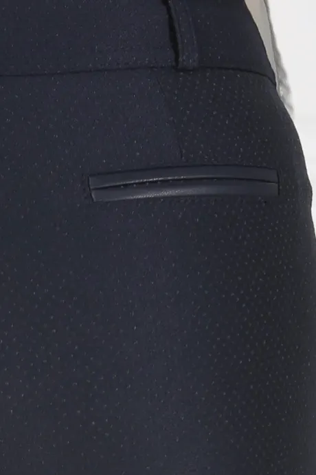 Брюки синие на средней посадке зауженные к низу с отделкой из кожи "Ринальди"