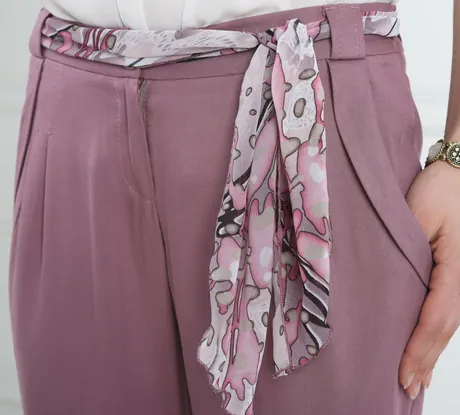 Очень понравились брюки с цветным поясом! Посадка удобная, резинка добавляет комфорта, а розово-серый цвет смотрится стильно и необычно. Очень довольна покупкой! 💖