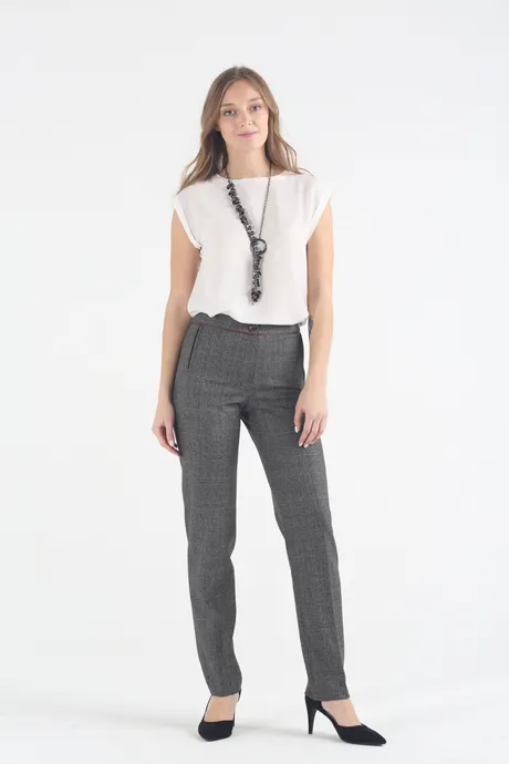 Раскрасьте межсезонье яркими красками, дополнив стильную серую модель броскими туфлями малинового цвета, эксцентричными ботильонами с крокодиловым или змеиным принтом, бордовой сумочкой или нежной розовой блузкой. Попробуйте необычные комбинации из традиционной клетки разного размера, включая классический принт в аксессуары, обувь, отделку воротника, манжет рубашки, лацканов пиджака. Зауженные к низу брюки на средней посадке будут превосходно смотреться с заправленными блузами, короткими пушистыми свитерами, облегающими водолазками и свободными блейзерами. Для прогулок по городу выберите пальто классического покроя и уютные полусапожки на небольшом каблуке. Такой наряд точно станет любимым в осенее-весеннее межсезонье и поможет сохранить жизнерадостный настрой.