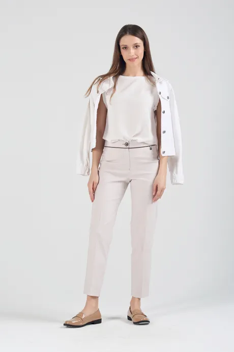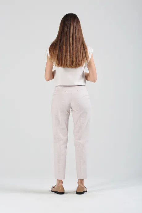 Брюки на средней посадке зауженные к низу 7/8 "Хлопок Райбер" бежевая клеточка