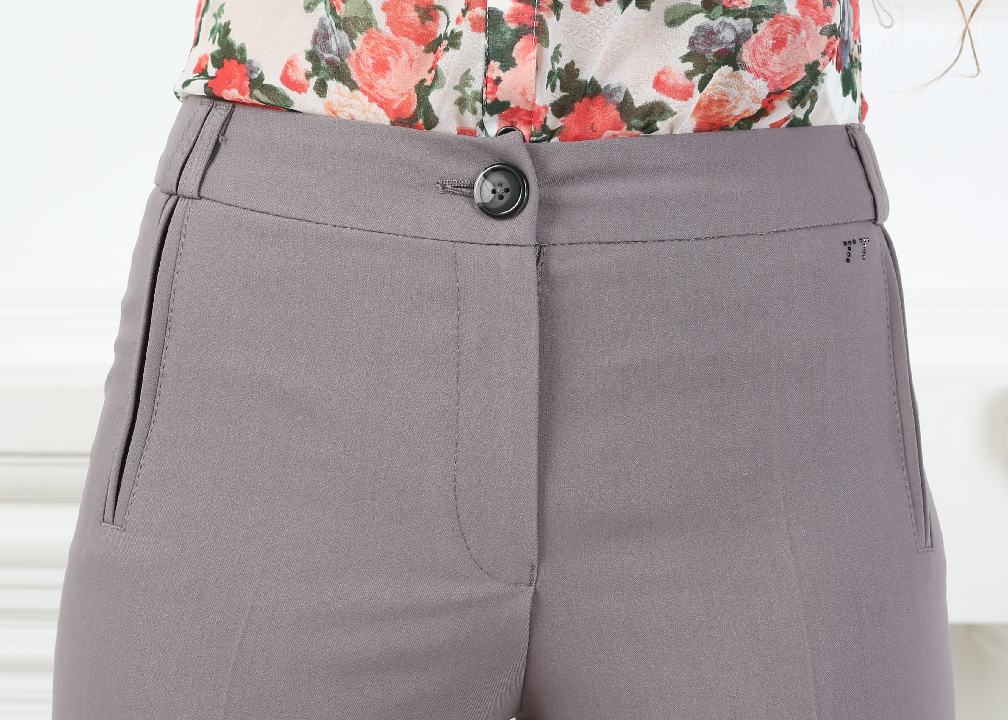Брюки серые на средней посадке зауженные к низу с карманами - «Модерн»