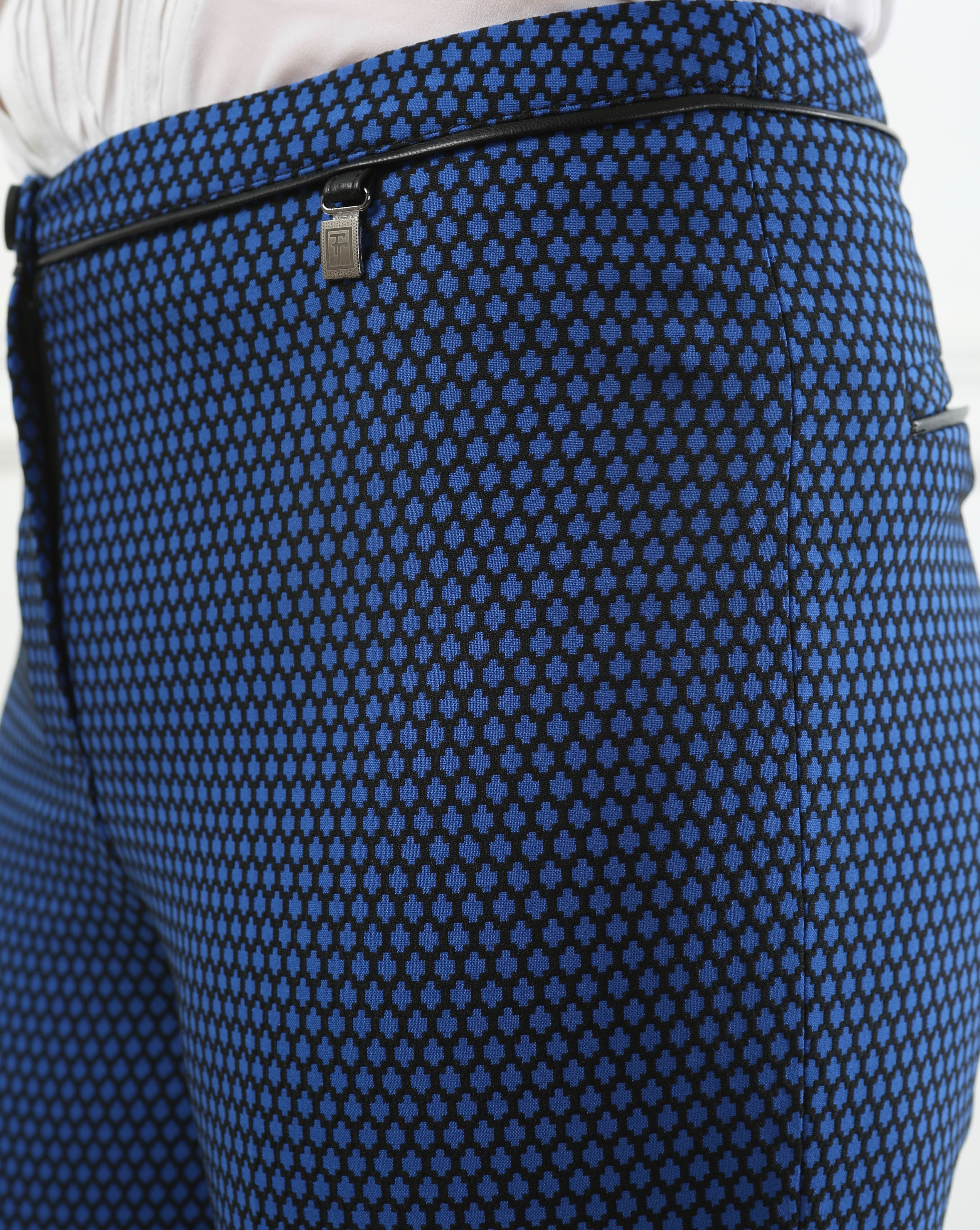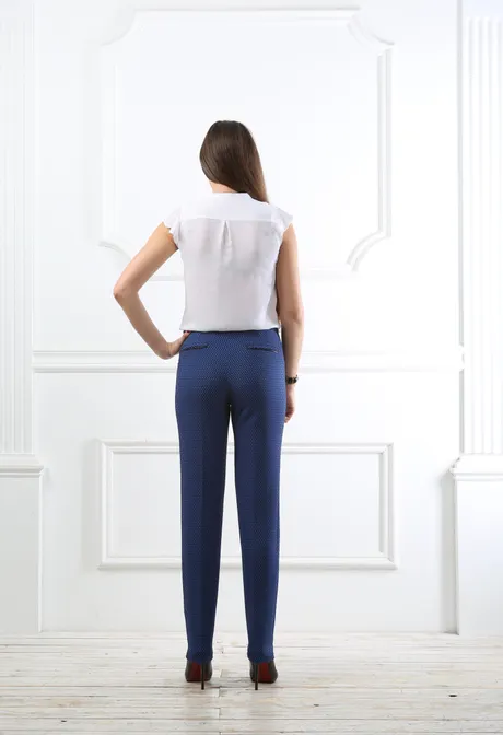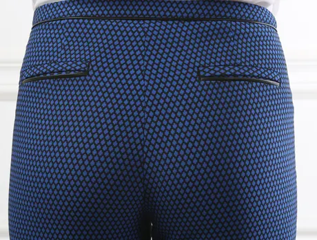 Брюки понравились, цветовое сочетание синего с черным очень стильное. Посадка удобная, штанины зауженные. Карманы немного мелковаты, но это незначительно.