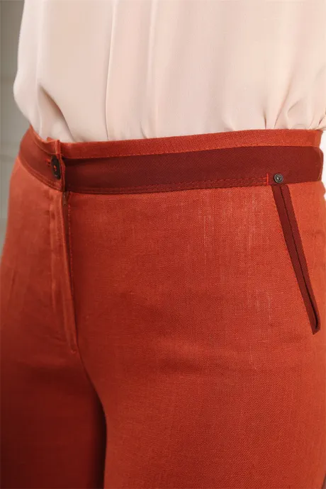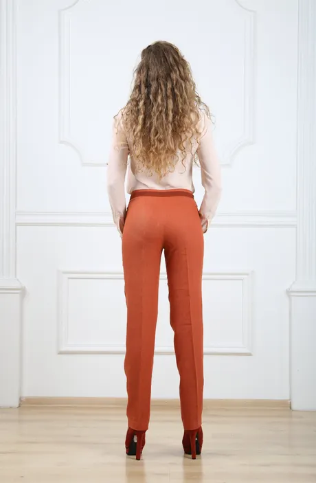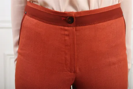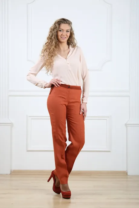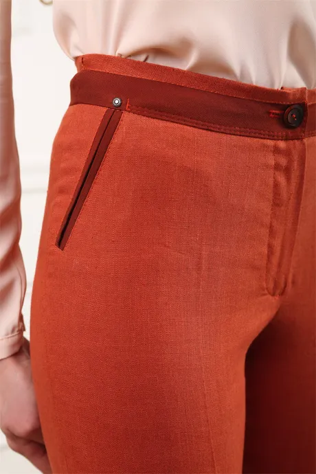 Очень понравились эти брюки с отделкой! Посадка комфортная, штанины зауженные, а карманы добавляют удобства. Немного плотные для жаркой погоды, но для осени будут идеальны.