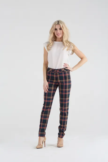 Очень стильные брюки с клеткой и кожаной отделкой. Посадка удобная, материал плотный, что делает их отличными для межсезонья. Очень довольна покупкой!