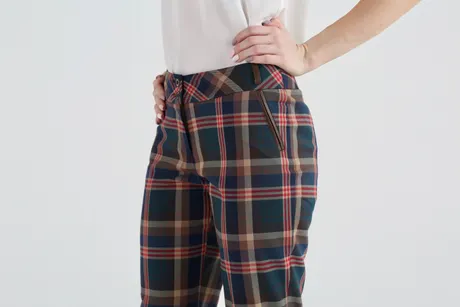 Брюки выглядят стильно, клетка и кожаная отделка – это интересное сочетание. Посадка удобная, но материал немного плотный для теплой погоды.