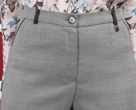 Отличные брюки! Высокая посадка очень удобна, серый цвет смотрится стильно и элегантно. Клетка классическая добавляет интереса к образу.