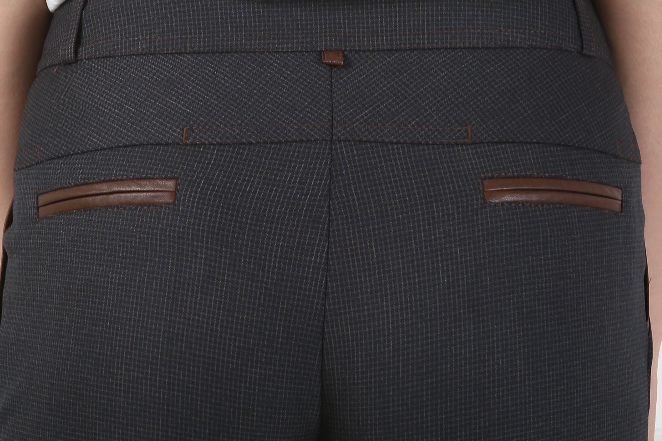 Брюки сине-коричневые на средней посадке зауженные к низу 7/8 - «Триумф»