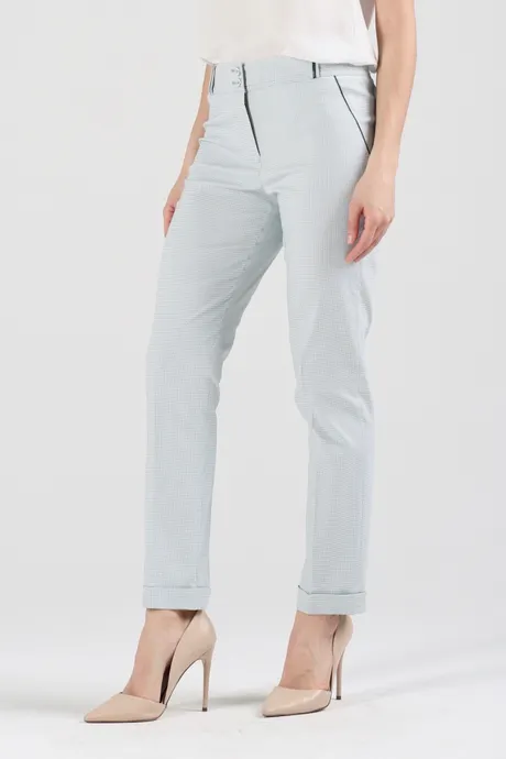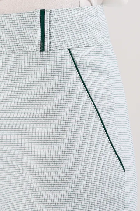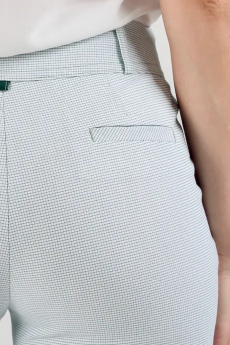 Летне-весенние повседневные наряды невозможно представить без натуральной одежды светлых тонов. Не относится к исключениям и деловой гардероб. Освежите офисные образы, включив в них зауженные к низу брюки на средней посадке 7/8 «Хлопок Райбер» зеленая клеточка. В этой модели вы будете всегда чувствовать себя комфортно, оставаясь элегантной и обаятельной даже в жаркую погоду.