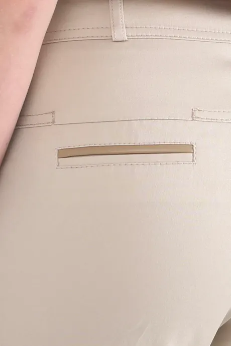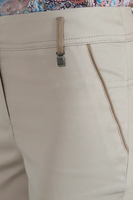 Бежевые брюки на средней посадке зауженные к низу с карманами 7/8 с отделкой из кожи «Хлопок» предназначены специально для теплого сезона. Их можно надевать на работу, учебу, прогулки, молодежные вечеринки, деловые встречи и семейные торжества. Легкая натуральная ткань подарит ощущение комфорта и обеспечит полноценный воздухообмен даже в летнюю жару, когда так не хватает свежести. А нежный пастельный оттенок станет прекрасной базой для любых экспериментов с цветовыми комбинациями.