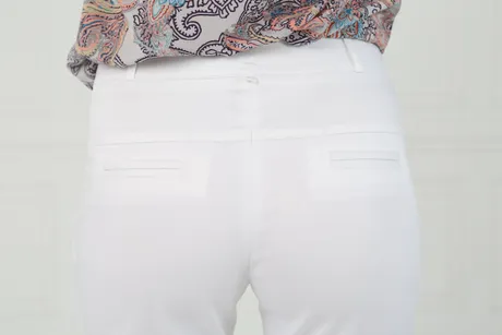 Главное достоинство модели – высокое содержание натуральных нитей. Она на 98% состоит из мягкого, приятного коже хлопка, позволяющего телу дышать. Универсальную длину 7/8 и женственный зауженный к низу крой оценят стильные девушки, следящие за модными тенденциями. Добавляют элегантности комфортной легкой модели изящные карманы и удобный пояс на пуговицах. Нейтральная белая гамма не ограничивает в выборе цветовых комбинаций. Уютные брюки на средней посадке можно сочетать и с яркими молодежными топами, и с нежными туниками пастельных тонов, и со строгими классическими блузами, и со свободными темными фуфайками. Составляйте оригинальные повседневные ансамбли – и чувствуйте себя уверенно каждый день.