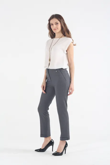 Дополните изысканные брюки «Дестини» воздушной туникой, если хочется романтики и трогательности. Украсьте зауженный к низу силуэт на средней посадке строгой блузкой, чтобы получить элегантный наряд к важным встречам. Сочетайте модную длину 7/8 с молодежными рубашками, вязаными пуловерами, объемными свитерами, чтобы чувствовать себя уютно в холодное межсезонье. Идеальной парой к мягкому голубо-бежевому тону станет одежда мятных, бирюзовых, серых, оливковых, сиреневых оттенков. Ну и конечно, не стоит забывать о классической для делового наряда пастельной гамме: от теплого кремового до освежающего стального.