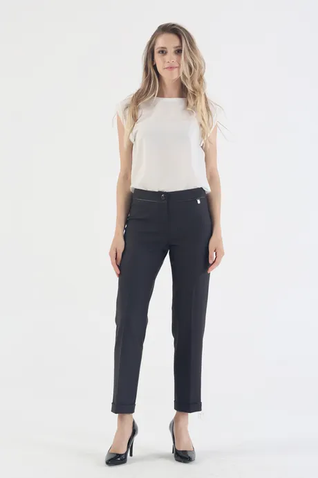 Подчеркните хрупкость фигуры, составив ансамбль из зауженных к низу брюк и необъятного свитера пастельных тонов. Дополните нежную модель «Стюарт» черным пиджаком прямого кроя, туфлями на высоком каблуке и шляпой с широкими полями, чтобы создать роскошный наряд в стиле «городской шик». Подберите к серо-синим брючкам на средней посадке яркую рубашку или тунику любимого оттенка, чтобы получить неформальный образ на каждый день. Невысоким девушкам пышных форм модную длину 7/8 стоит комбинировать с однотонным верхом темных тонов, рисунком из вертикальных полос, обувью на каблуке или платформе, чтобы казаться выше и стройнее.