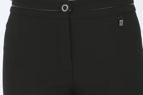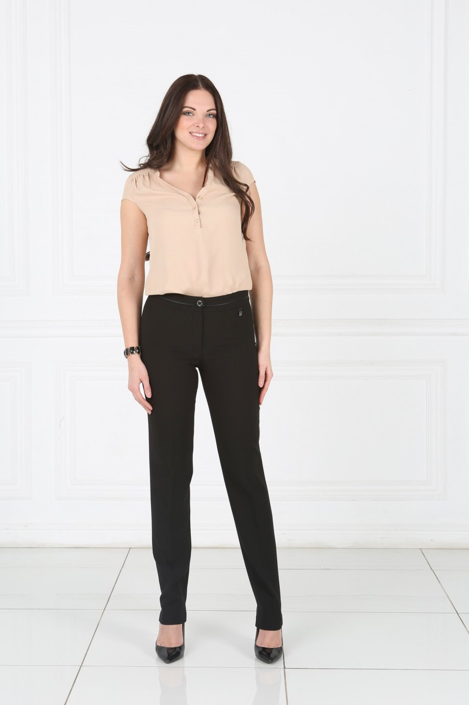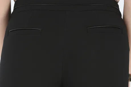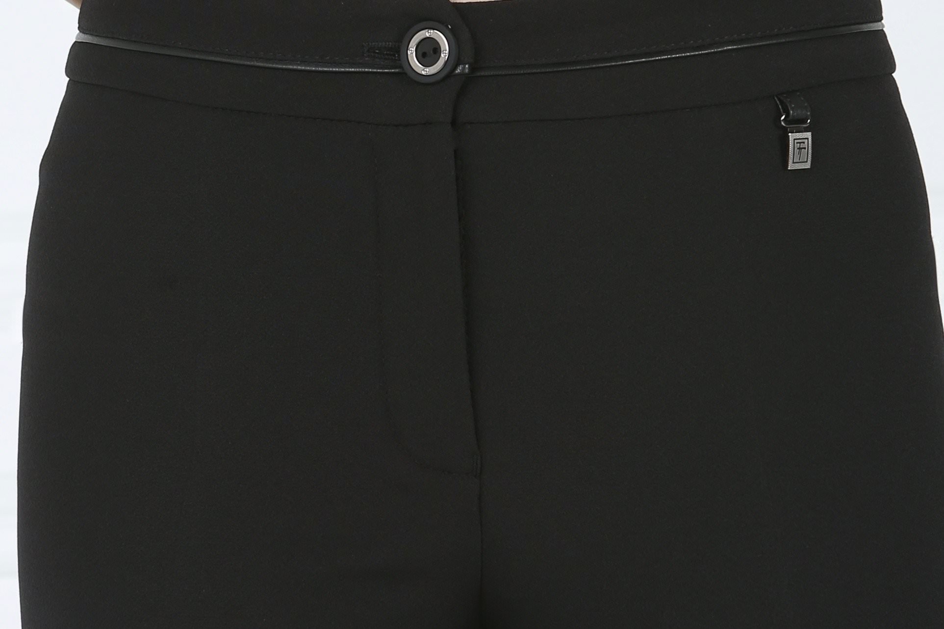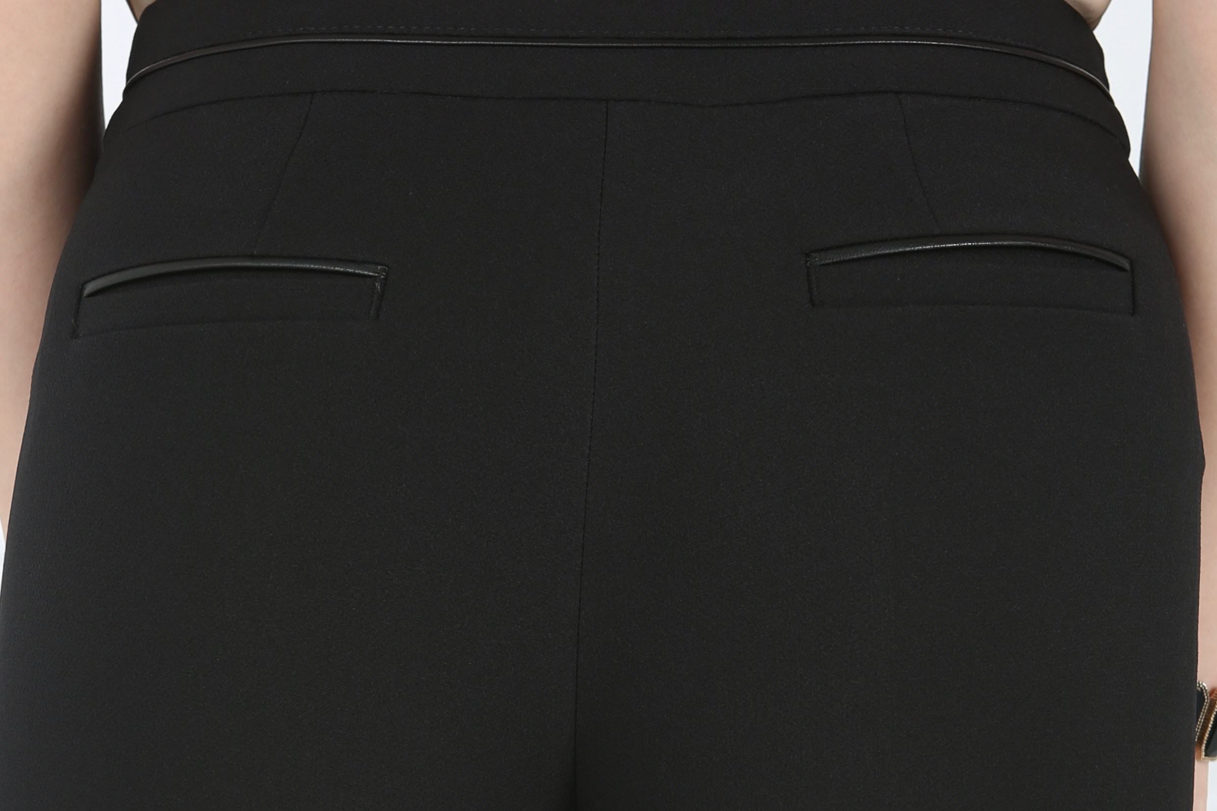 Брюки черные на средней посадке зауженные к низу с кожаным кантом "Джульетта"