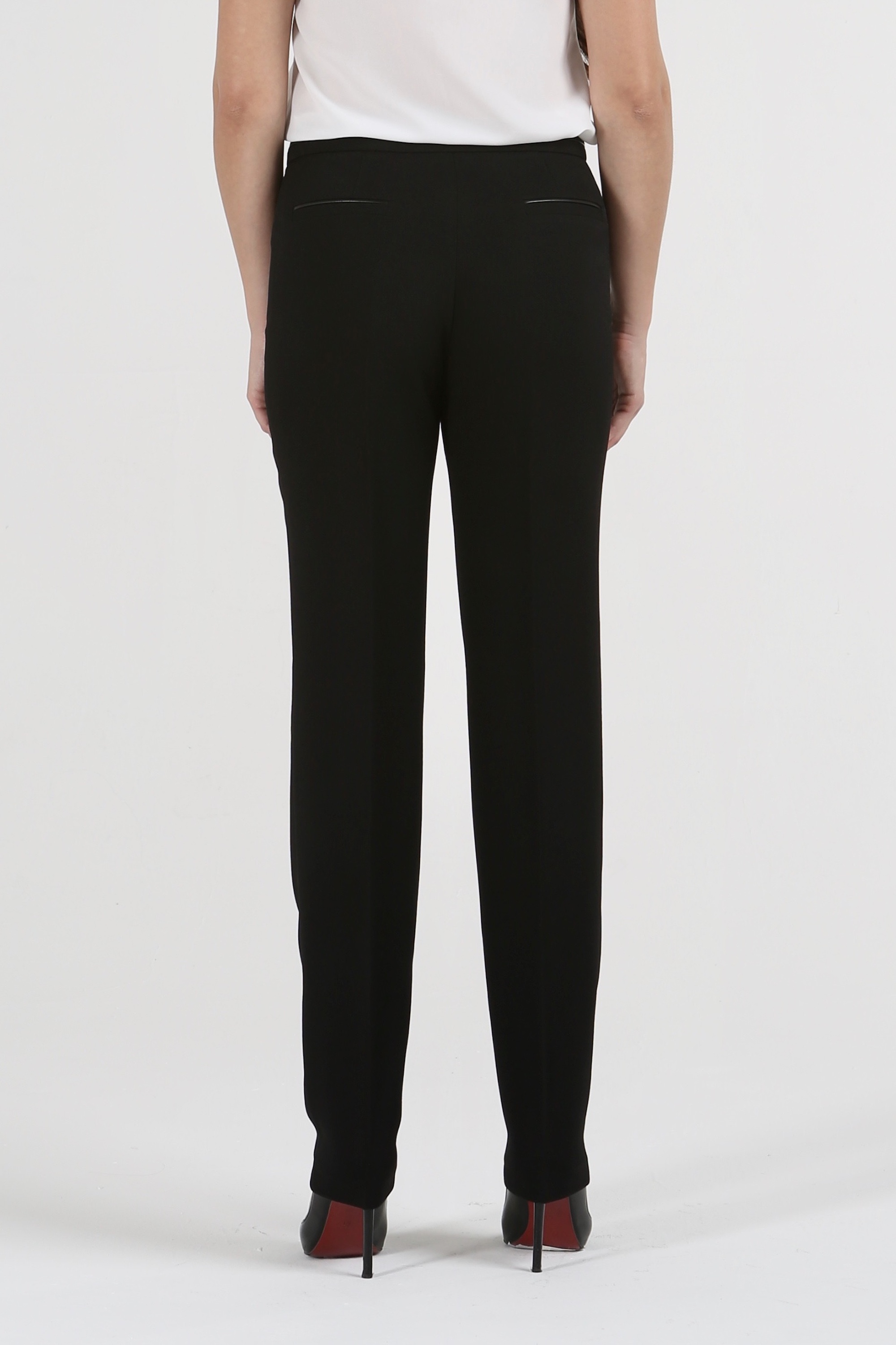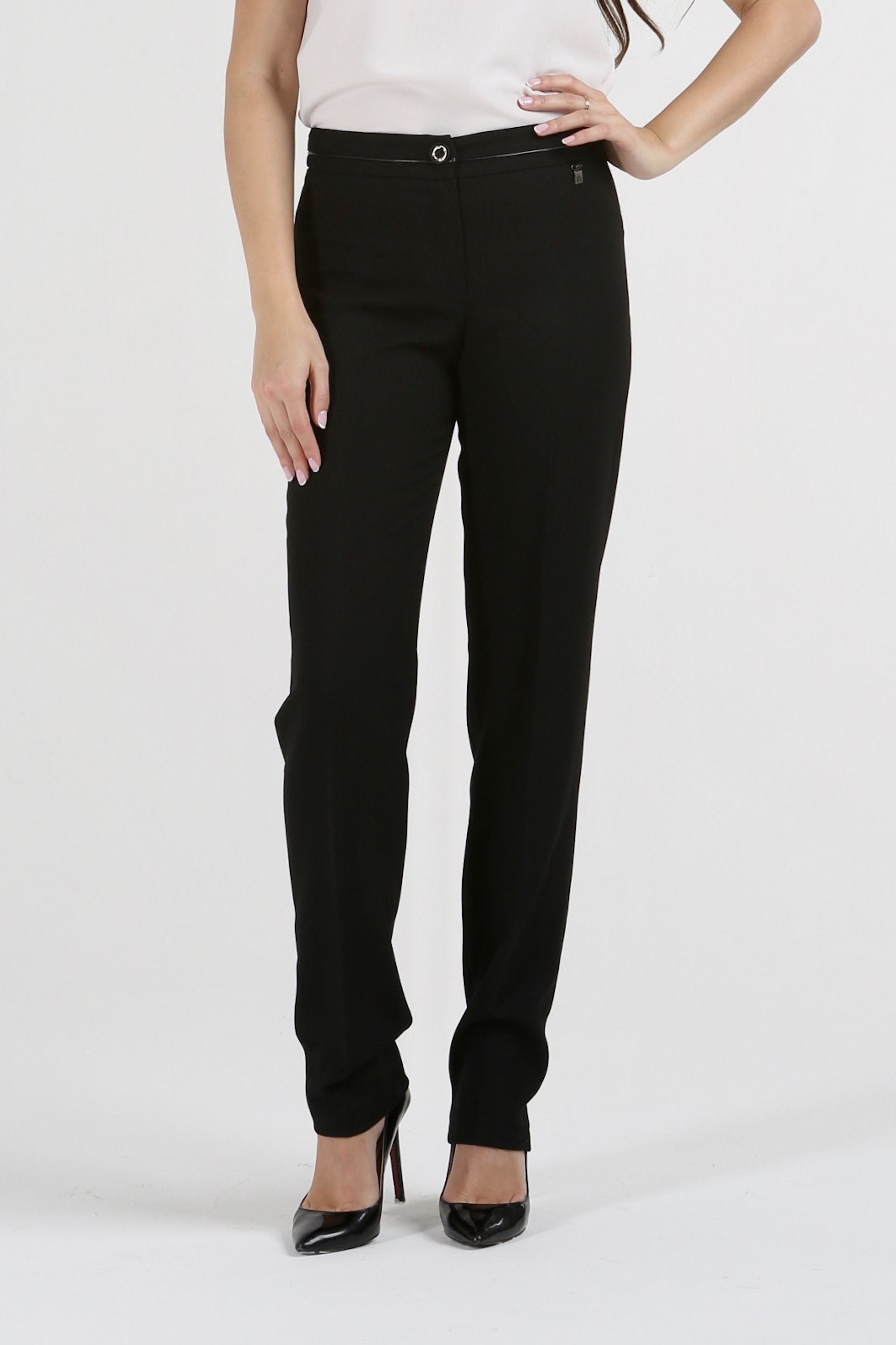 Любите классические наряды, но устали от однообразных моделей? Черные брюки на средней посадке зауженные к низу «Астория» внесут желаемое разнообразие в традиционные ансамбли, не утяжеляя их. Напротив, в изысканной дизайнерской одежде вы будете выглядеть стройнее, нежнее и изящнее. Об этом позаботится удачный женственный силуэт, выигрышная темная гамма и пара-тройка стильных акцентов, без которых невозможен роскошный офисный образ.