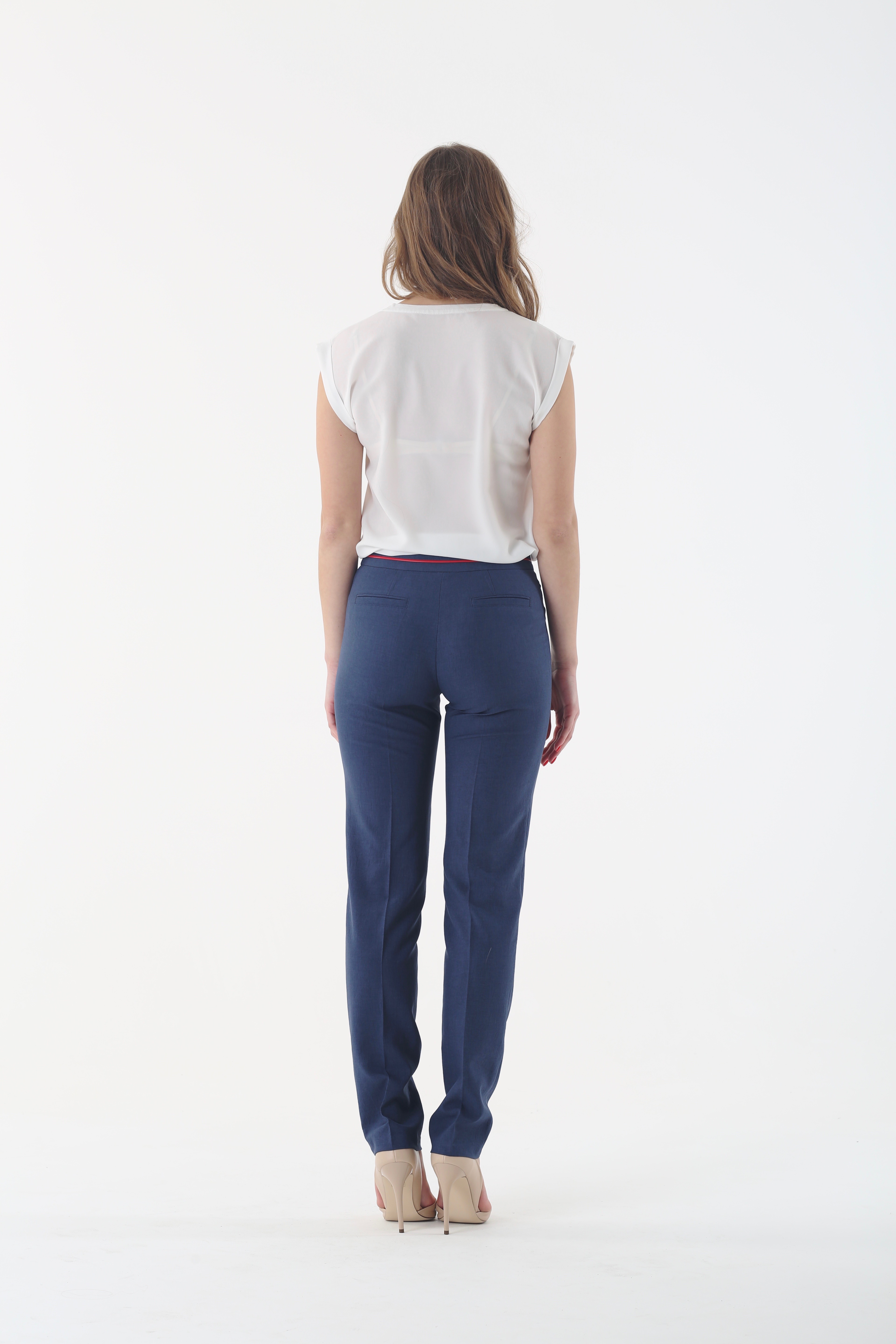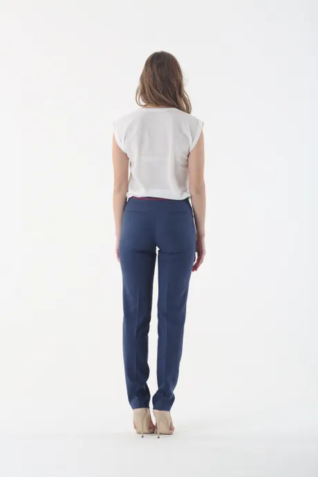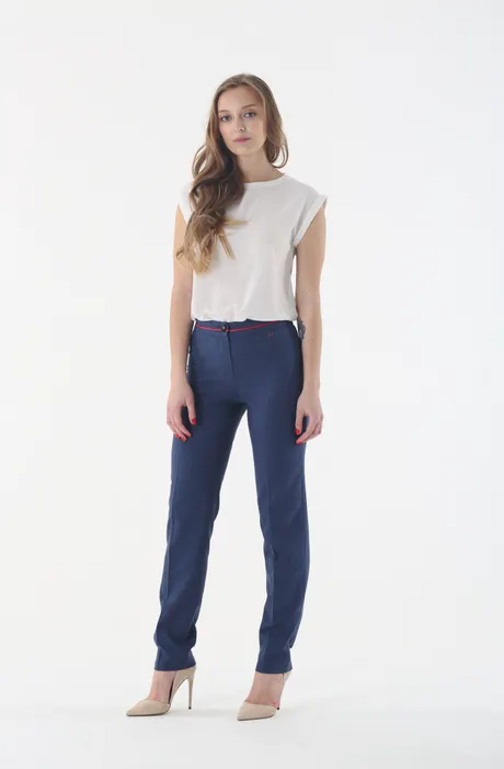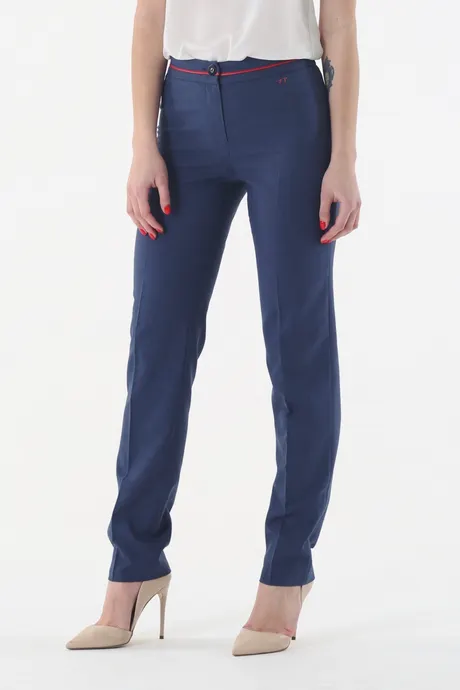 Брюки синие с красным кантом на средней посадке зауженные к низу - "Доминикана"