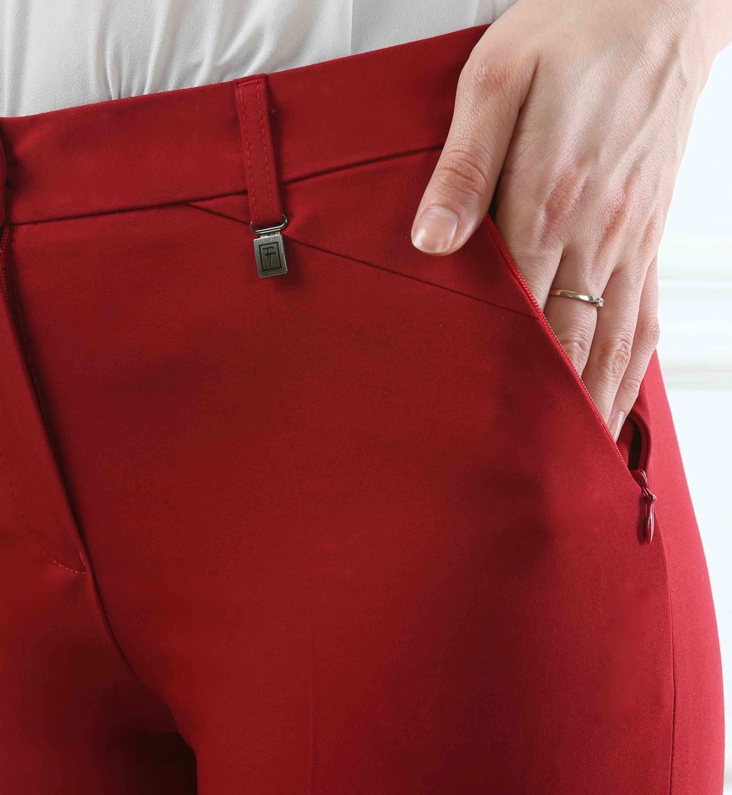 Терракотовый цвет смотрится очень красиво, посадка удобная. Зауженные к низу штанины делают образ элегантным. Очень довольна покупкой!