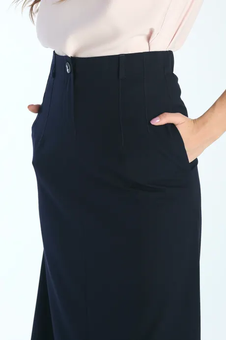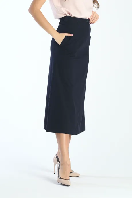 Представляем вашему вниманию темно-синюю юбку «Лимбург» средней длины на средней посадке. Этот модный элемент гардероба подойдет для любого случая, будь то работа, свидание или прогулка. Универсальный темно-синий цвет легко сочетается с другими вещами, позволяя создавать различные стильные ансамбли. Сделайте свой гардероб еще ярче и моднее с юбкой «Лимбург»!