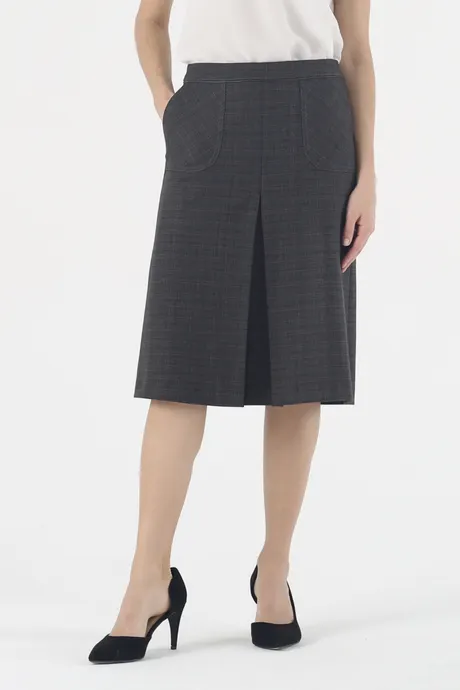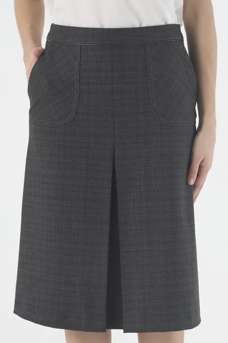 Красивые складки спереди придают модели необходимую женственность. Длина юбки на средней посадке расклешенной к низу «Версави» в серо-оранжевую клетку выбрана не случайно. Она оптимальна для сочетания как с деловым жакетом, так и с кокетливой блузкой. В модели предусмотрены и накладные кармашки – они придают изделию изюминку и позволяют иметь под рукой такую мелочь, как носовой платок. Этот фасон для стильных и знающих себе цену женщин, которые умеют нравиться окружающим.