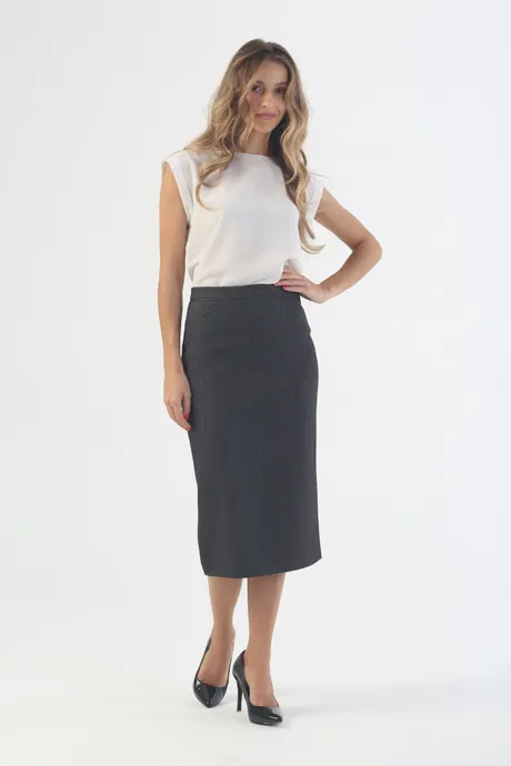 Юбки миди делают женщину невероятно изящной. Несмотря на то, что многие отдают предпочтение юбкам до колена, длина до икры считается признаком вкуса. Если ваш выбор – это юбка на высокой посадке зауженная удлиненная «Леон» серая, то вас можно называть женщиной с шармом. Ведь такая модель поможет вам продемонстрировать все достоинства фигуры и в то же время проявить некоторую сдержанность в чувствах. К такой модели стоит надеть очень женственный верх – например, блузку из белого или яркого шифона. Однако юбка будет не менее отлично смотреться и со строгой рубашкой в офисном стиле.