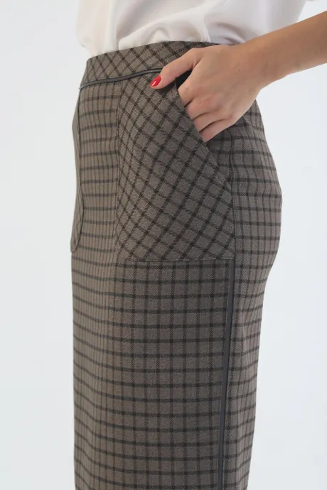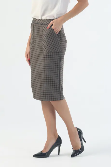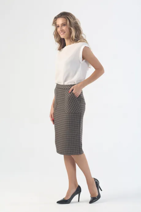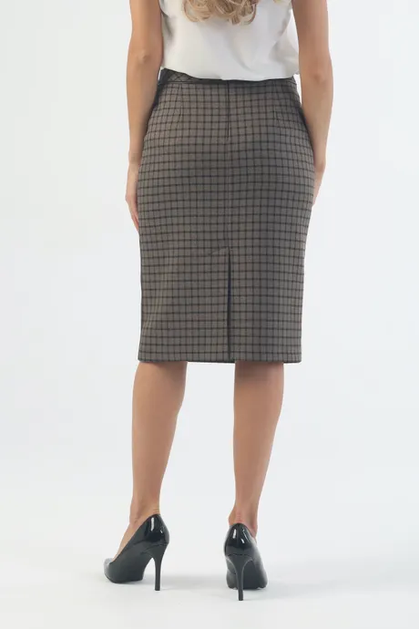 Современная деловая юбка не обязательно должна быть черной. Существует множество вариантов, делающих этот предмет гардероба эффектным и при этом классическим. Юбка на средней посадке прямая «Клетка Ди» бежево-коричневая с отделкой входит в число именно таких моделей. Она уникальна во многих отношениях – благодаря не только необычайно удобному в ношении фасону, но и оформлению.