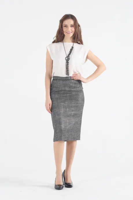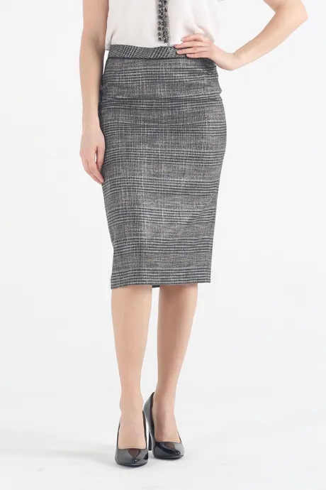 Достоинства этой модели бросаются в глаза. Прежде всего, это оптимальная длина. Юбки по колено помогают продемонстрировать изящество ног и красивые бедра. Высокая шлица делает походку еще более женственной. Классический покрой серо-желтой юбки на средней посадке слегка зауженной к низу «Клетка» не предусматривает никаких дополнительных деталей. И от этого изделие только выигрывает. Светлый оттенок ткани позволяет удачно сочетать юбку с темным жакетом или пиджаком, а также с ярким топом. Хотите чувствовать себя элегантно? Значит, предлагаемая модель станет правильным выбором.