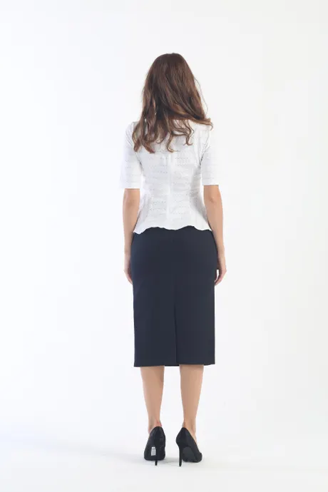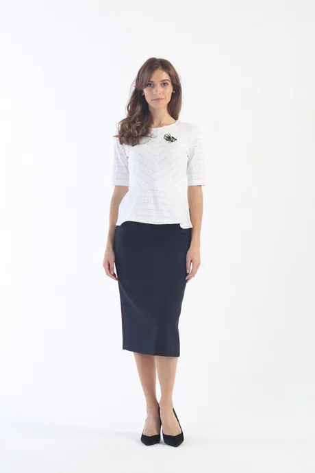 Чтобы выглядеть элегантно, достаточно приобрести всего несколько предметов одежды – главное, чтобы каждая вещь была выдержана в классическом стиле. Одной из них является юбка на высокой посадке зауженная удлиненная «Юнона» серо-синяя. Представьте, насколько эффектно вы будете в ней смотреться! Мягкая ткань, изящные линии силуэта и удобная посадка – это преимущества модели, от которой не сможет отказаться ни одна модница. Поясная планка изделия отделана тонким атласным кантом. Это делает юбку очень изысканной. Имеется и еще дна деталь, позволяющая говорить об уникальном стиле. врезные карманы оформлены «уголком», что придает серо-синей юбке на высокой посадке зауженной удлиненной «Юнона» особую эффектность. Кстати, стоит обратить внимание на цвет изделия. Приятный синий оттенок сделает любой ваш образ уверенным и обновленным. К этой классической юбке подойдет легкая шифоновая блузка, красивая вечерняя кофточка, строгая офисная рубашка. Длина ниже колена требует вдумчивого подхода к выбору обуви. Для лета выбирайте стильные туфли на изящном каблуке, а для холодов – высокие сапоги.